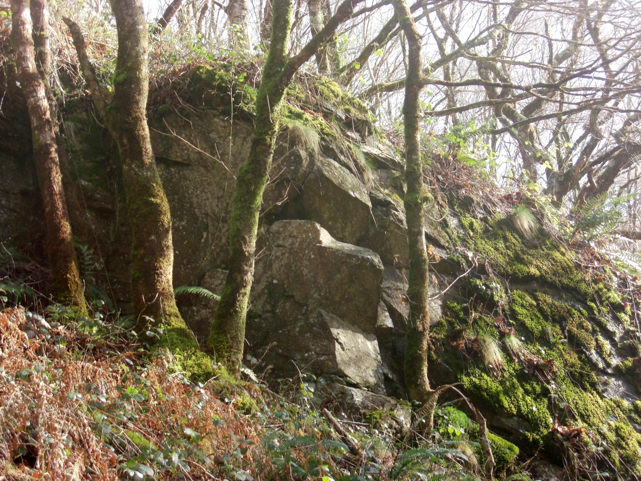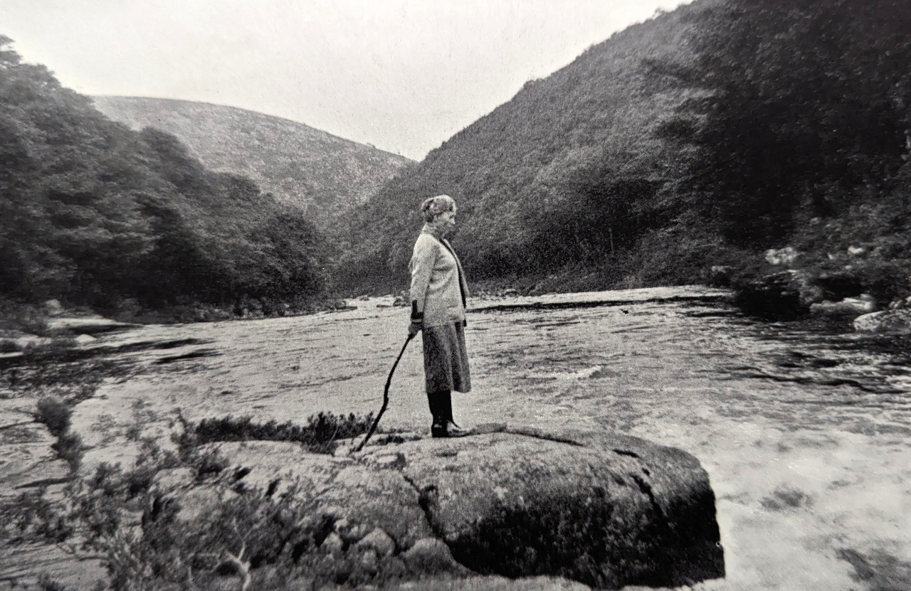 The River Dart East and South of Luckey TorTim Jenkinson on 22nd November 2025![]() Luckey Tor. Photo by Tim Jenkinson This article is a companion piece to an account that appeared In Dartmoor Magazine number 153 (Spring 2024) under the heading 'The River Dart South of Dartmeet'. It provides details on the various rockpiles that can be located beside and high above the riverbank between Luckey Tor and New Bridge. Whilst it is a dramatic landscape that can be visited in sections, care must be taken in the often rocky and uneven terrain. Broadstone SX 6888 7235Leaving the magnificent rock face of Luckey Tor the next point of interest lies close to the foot of Simon's Lake a short water course that empties into the main river from the north. Here there are a series of curious flat boulders smoothed over by centuries of the downstream torrent that extend into the very heart of the river. ![]() Broadstone. Photo by Tim Jenkinson Marked as Broadstone on Ordnance Survey (OS) maps this spectacular vantage spot is also referred to as Brad, Broad and Broada Stones in the literature. Understandably given its location with spectacular steep hillsides and almost impossible gradients to the east the area has been romanticised and has become associated with various myths and legends linked to a phenomenon known as the 'Cry of The Dart'. Information gleaned from the Tors of Dartmoor (ToD) website (2025) indicates that William Crossing (1912) was one of the first to describe the effect in Guide to Dartmoor where on page 458 he states: 'Opposite to the extremity of the promontory [Bench Tor] Simon's Lake falls into the river, and here are the boulders known as the Broad Stones. To "heer the cry o' the Brad Stones" is a sign of coming foul weather.' Later in 1951 Ruth Manning Sanders (1886-1988) repeats that assertion describing Broadstone as 'those boulders that are said to 'cry' when foul weather is coming'. The stones have also played a part in the legend of Jan Coo of Rowbrook who disappeared after following what he thought was the call of his name to the river below. ![]() Beatrice Chase at Broadstone 1931 Eric Hemery (1983 p594) seems to explain the cause of the sound: 'As the river by-passes Broada Stones, it is confined in a small canyon, and when a wind blows through the gorge, it produces a strange, high-pitched sound amplified by the great natural sound-chamber.' Other authors such as Lady Rosalind Northcote in 1908, Beatrice Chase in 1928 and Nancy Van Der Kiste (NVDK) in 1990 have linked the 'cry' to various legends associated with the well-known Devonian rhyming couplet of 'River of Dart! O River of Dart! Every year thou claimest a heart' that is used at the start of a poem by Edward James Mortimer Collins from 1865. Since then that verse has been used to explain away a sequence of fatalities along the river. Indeed, the Dart is certainly a dangerous and twisting watercourse but strangely over time the simple two lined verse has become misrepresented. Most notably and perhaps the most puzzling is by Beatrice Chase herself in the book 'Through a Dartmoor Window' a reprint from 1928 where on page 12 she quotes 'River of Dart, River of Dart, Every Year Thou Demandest a Heart'. The same author is pictured at the spot in 1931 in her booklet entitled 'Dartmoor Snapshots', standing on one of the furthest stones set into the very middle of the river. Simon's Lake Tor SX 6900 7231About 150 metres or so to the east of Broadstone and on the same side (north) of the river is a fine tor first noted it seems in recent times by Steve Grigg. It is surprising to find no mention of this towering cliff like pile anywhere in the literature and most oddly it is the failure of William Crossing to mention it even though he describes a route along the riverbank that would have taken him beneath the rocks. ![]() Simon's Lake Tor. Photo by Tim Jenkinson This account of the site appears on the ToD website for 2025: 'The tor here presents as a grand rugged rock face that rears up from just above the riverbank and is quite humbling to stand beneath. It gives the impression of a rarely visited place set as it is under the far southwestern edge of the precipitous slope of Mel Tor (Mil Tor) Wood'. It certainly is a secluded spot beside the Dart and the upward sweep and declivity of the steep wooded hillsides on both sides of the river are well appreciated here. Mel Tor SX 6934 7260Next in sequence is the best-known tor on this circuit. Mel Tor is a tremendous rockpile but is much better accessed with ease from Bel Tor Corner to the north rather than trying to climb the precipitous slope from the river up through the trees. This route can be done but it is torturous. The sprawling outcrops of the tor extend for a great distance under and to the west of the trackway known as Doctor Blackall's Drive tumbling down the slope towards the river. ![]() Mel Tor view. Photo by Tim Jenkinson The ToD entry is as follows; 'This is an excellent and romantic granite tor with great views of the Dart Valley and Venford Reservoir, with the Bench Tors beyond. As well as boasting good geology, it is very easy to access. This is from the north at Bel Tor car park with only a 5-minute walk to the tor. The summit of Mel Tor is adorned with small, irregular rock basins that occasionally trap rainwater. A fine millstone can also be found on the south side of the tor at SX 69346 72531, its abandonment indicative of stone cutting on the tor in times gone by. The tor spills far into the woodland of the same name below, spreading on the slopes beneath the summit rocks with many sizeable outcrops to the south and west, and there is an outlying stack to be located at SX 69466 72480'. Earlier Eric Hemery (1983) questions the modern version of the name as used on OS maps; "East of Simon's Lake is the greatly weathered pile of Mil Tor (1,125 feet) which, like its westerly companion Sharp Tor, stands in a commanding position six hundred feet above the valley