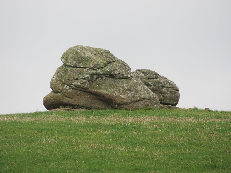 Popple TorSloncombe Hill Tor ![]() To the west of Moretonhampstead, beyond the small hamlet of Sloncombe, there rises a modest ridge that stretches north-west for just under 2 kilometres with its entire length followed by a narrow metalled lane. The highest point of the ridge is the lesser known Sloncombe Hill, listed in the Database of British Hills at a height of 276m (906 feet), classed as a Tump (a hill in Scotland, England, Wales, the Isle of Man or Channel Islands which is separated from adjacent tops by a height difference of at least 30 metres on all sides) and with a brief summit description of "tor in pasture". ![]() As the lane approaches the crest of the hill from the south, look east into the private fields and you will see a small summit tor some 80 metres away. What we have here is a split outcrop, perhaps the result of weathering, with two sections no more than half a metre apart. Its stature is disappointing, the view from the lane promises much but in reality, the outcrop is little over 6 or 7 feet in height. ![]() Within the same field, there are two further collections of substantial sized rocks. One looks to be the result of field clearance rather than a natural feature, but another lower pile on the northern edge of the field looks more promising. ![]() There is an interesting name attached to this plot of land, that of 'Popple Tor' which the landowner brought to the attention of Max Piper in 2022. The name is included on a 1964 map attached to farm deeds although its exact origins remain unknown. Please note that the tor is clearly visible from the roadside, however, should you wish to visit, you must seek permission.